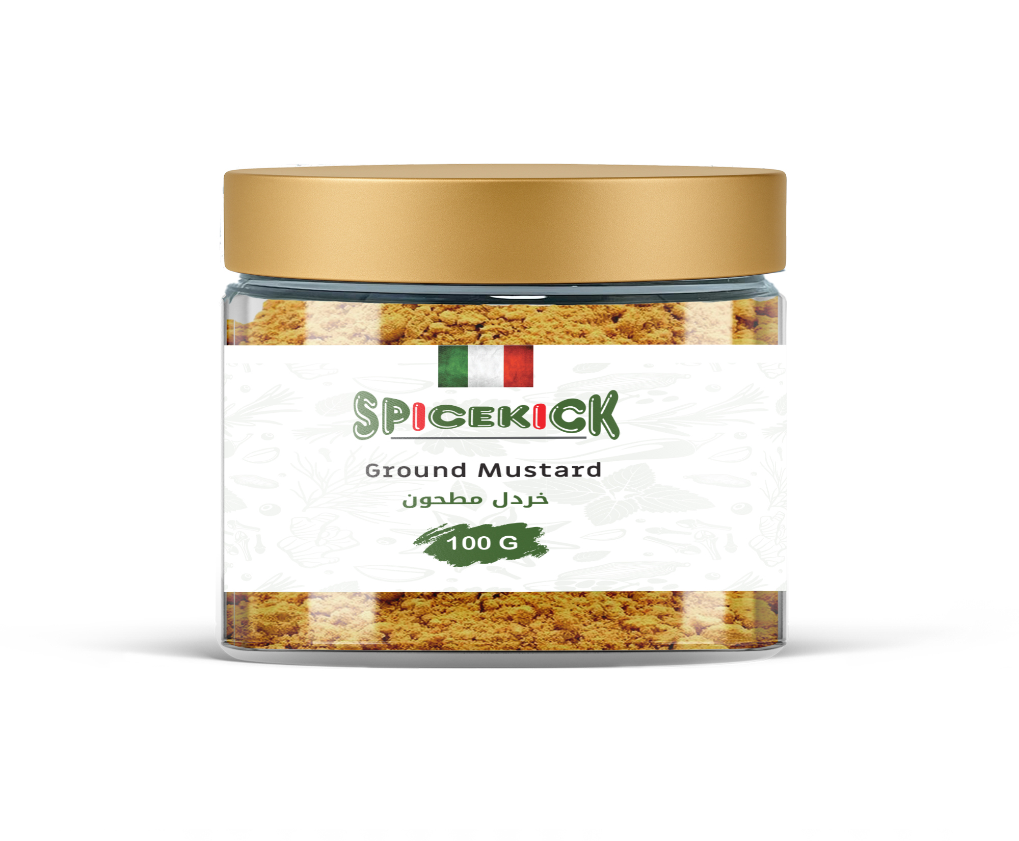 خردل مطحون ناعم 100 جرام من SPICEKICK – نكهة لاذعة ومميزة تضيف طعمًا غنيًا لوصفاتك، مثالي للتتبيلات والصلصات والطهي ويمنح الأطباق لمسة نكهة قوية ومتوازنة